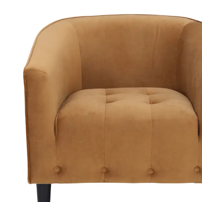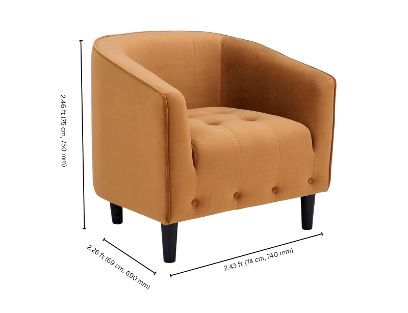 | Material: Velvet upholstery, Wooden legs. |